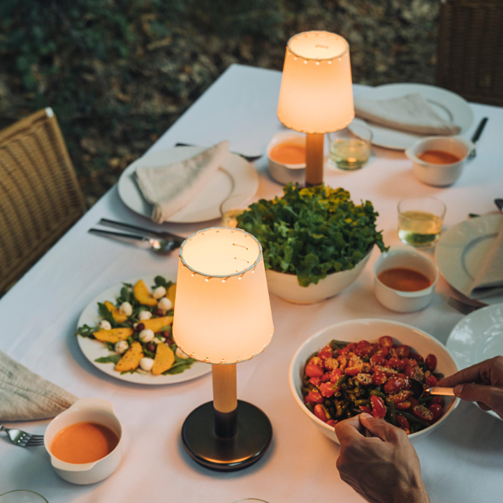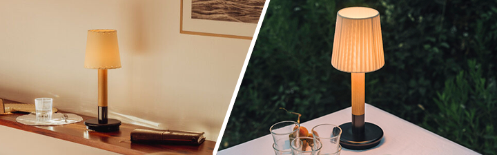 With a rechargeable Lithium battery, this portable table lamp can hold up to 14 hours of a full charge and allows you to bring soft ambient light wherever you go, making it a light and practical companion.