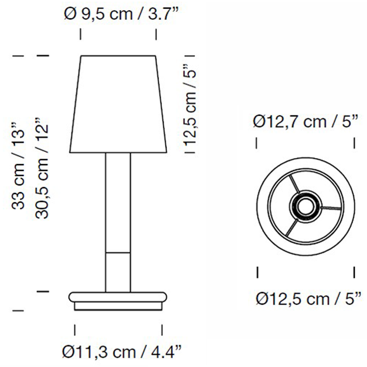 With two lumen intensities, the touch dimmer provides a precise and efficient way of controlling the atmosphere within a space. Turn the light on and off by slightly pressing on the circular base.