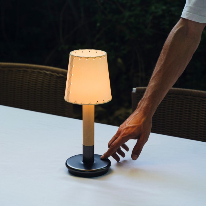 This portable table lamp is perfect for any interior or exterior environment. Place it on a bedside table, desk or reading nook or even pick it up and take it outside to brighten up your outdoor spaces.