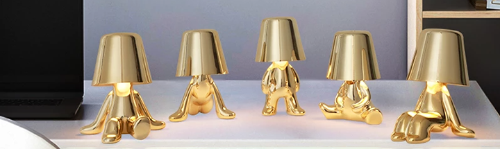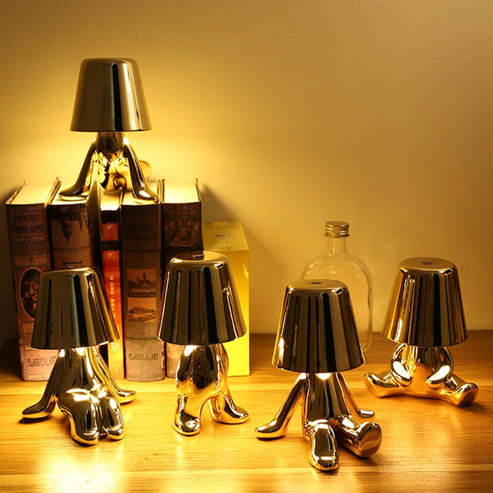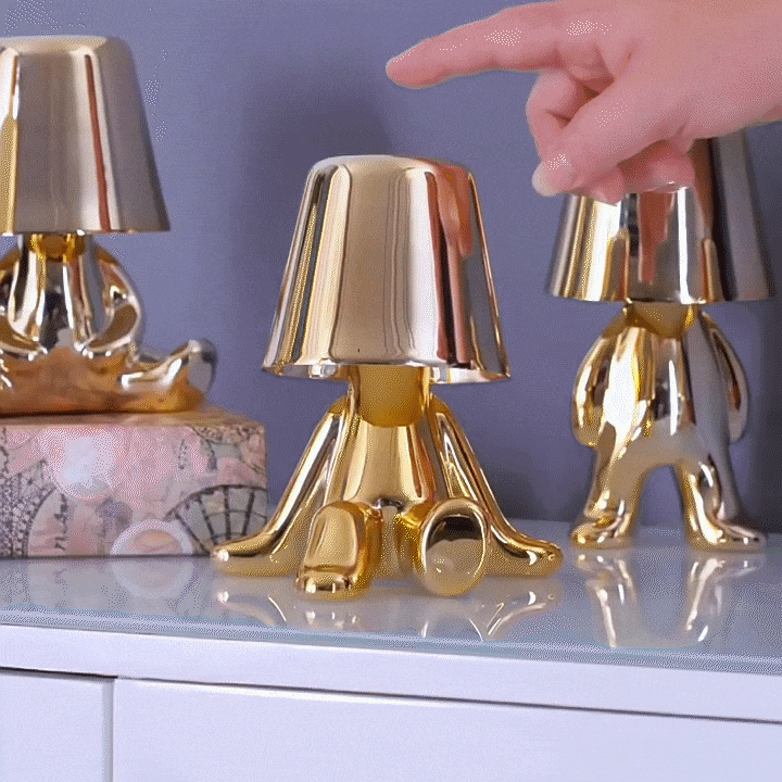 These little gold men lamps with perfect detail that can characterize the table and personalize every corner of the house. Ideal lamps for reading, living room, bedroom, hotel room, den, nursery, or office...