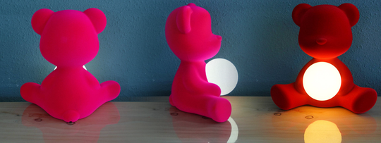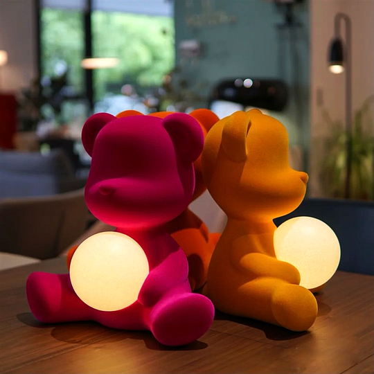 The Teddy bear is the moving object par excellence, now reinterpreted and become a table lamp. Softer to the touch, this teddy bear lamp is made of velvet, in color variations ranging from warm to cold tones.