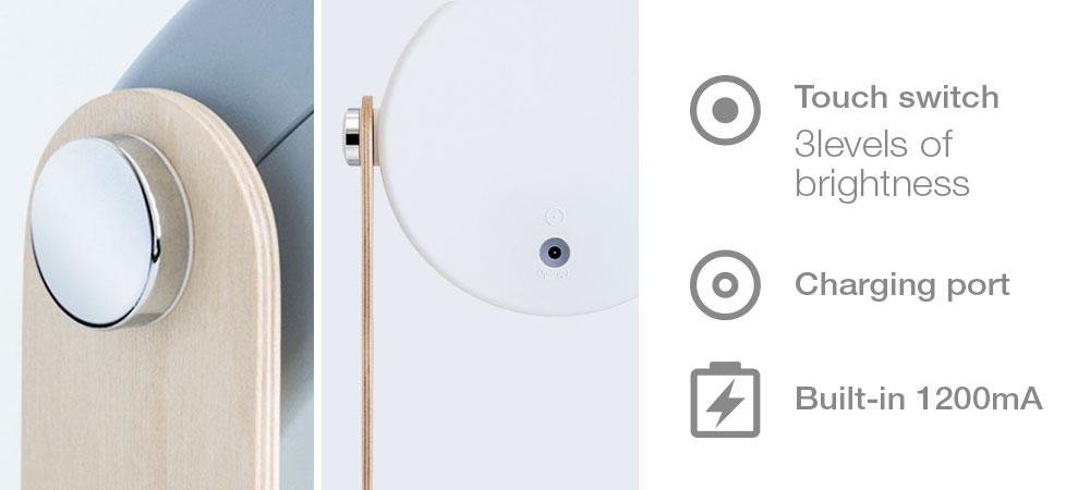 Three different brightness levels are available – soft warm-glow / soft white light / bright white light