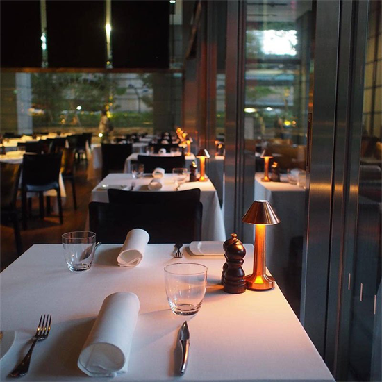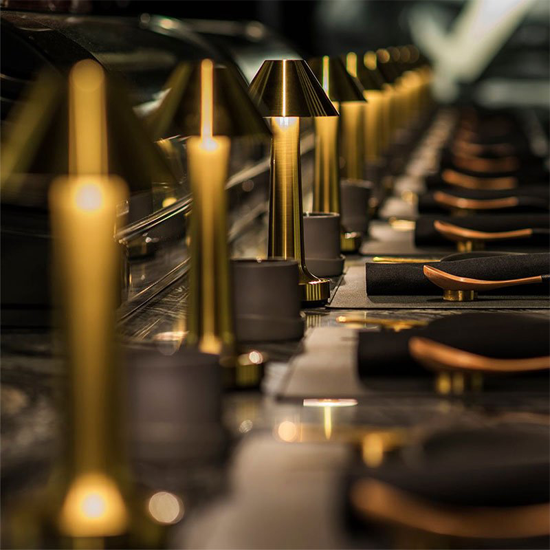 A slim metal-bodied cordless table lamp featuring a cylindrical diffuser gives maximum direct downlight without glare, adding a different atmosphere to your home.